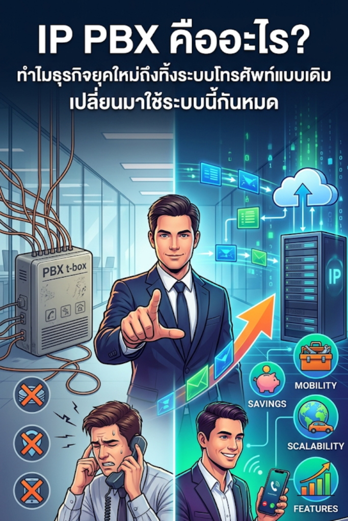 ในยุคที่การทำงานแบบ Hybrid และ Digital Transformation กลายเป็นมาตรฐานใหม่ของธุรกิจ “ระบบโทรศัพท์พื้นฐาน” แบบเดิมๆ อาจกลายเป็นตัวฉุดรั้งความคล่องตัวของคุณ หากคุณกำลังมองหาวิธีลดค่าใช้จ่ายและเพิ่มประสิทธิภาพการสื่อสารในองค์กร IP PBX เป็นอีกตัวช่วยในการหาคำตอบที่คุณไม่ควรมองข้าม